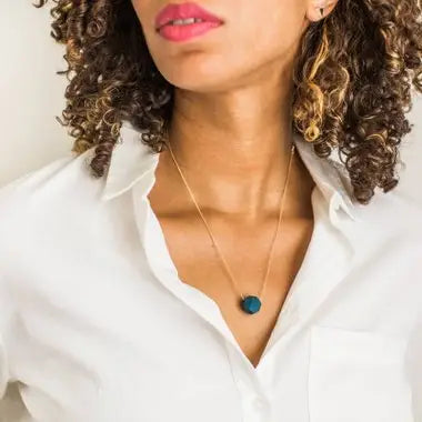 Petite Faceted Porcelain Dark Teal Necklace